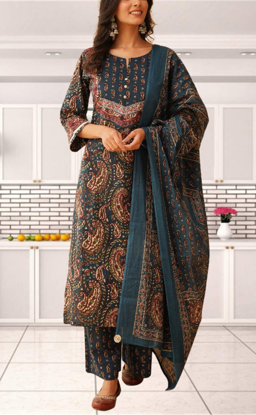 View full detailsIndigo Blue Paisley Print Jaipur Cotton Kurti With Pant And Dupatta Set. Pure Versatile Cotton. | Laces and Frills