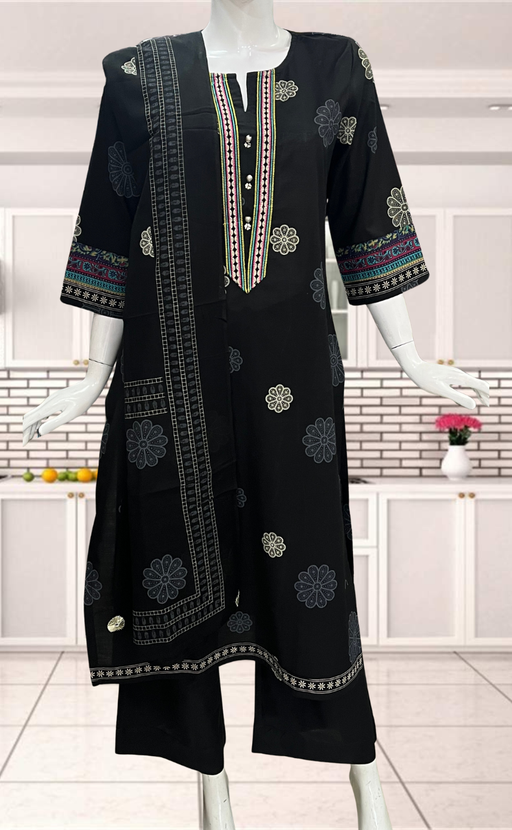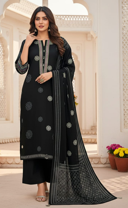 View full detailsBlack Floral Jaipur Cotton Kurti With Pant And Dupatta Set. Pure Versatile Cotton. | Laces and Frills