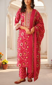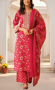 Hot Pink Garden Jaipur Cotton Kurti With Pant And Dupatta Set. Pure Versatile Cotton. | Laces and Frills