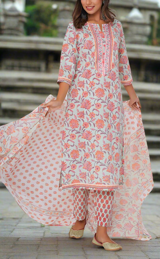 View full detailsWhite Floral Jaipur Cotton Kurti With Pant And Dupatta Set. Pure Versatile Cotton. | Laces and Frills