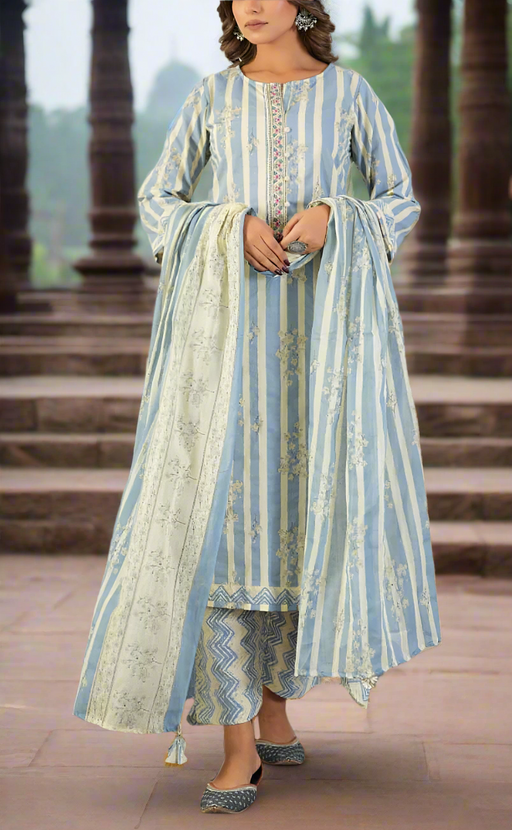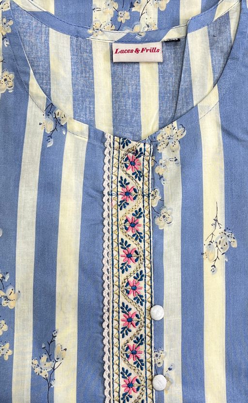 View full detailsLight Blue Floral Jaipur Cotton Kurti With Pant And Dupatta Set. Pure Versatile Cotton. | Laces and Frills