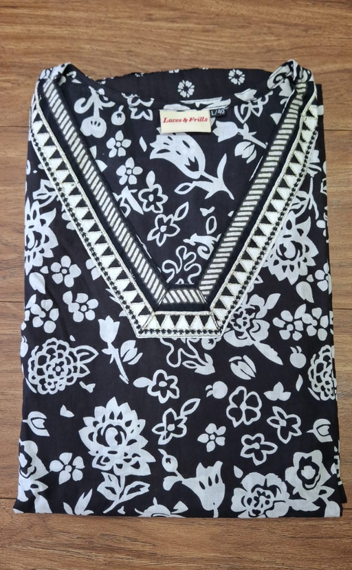 View full detailsBlack/White Floral Jaipur Cotton Kurti With Palazzo Pant And Dupatta Set. Pure Versatile Cotton. | Laces and Frills