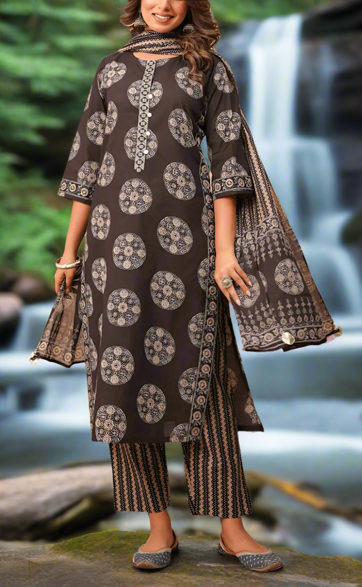 View full detailsBlack Ikkat Print Jaipur Cotton Kurti With Pant And Dupatta Set. Pure Versatile Cotton. | Laces and Frills