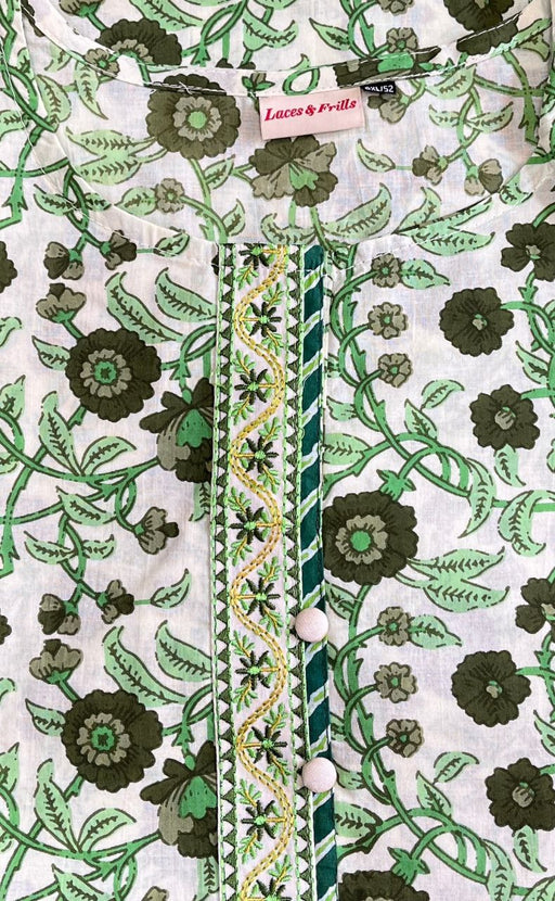 White/Green Garden Jaipur Cotton Kurti With Pant And Dupatta Set .Pure Versatile Cotton. | Laces and Frills