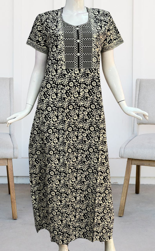 Black Garden Floral Pure Cotton Nighty. Pure Durable Cotton | Laces and Frills