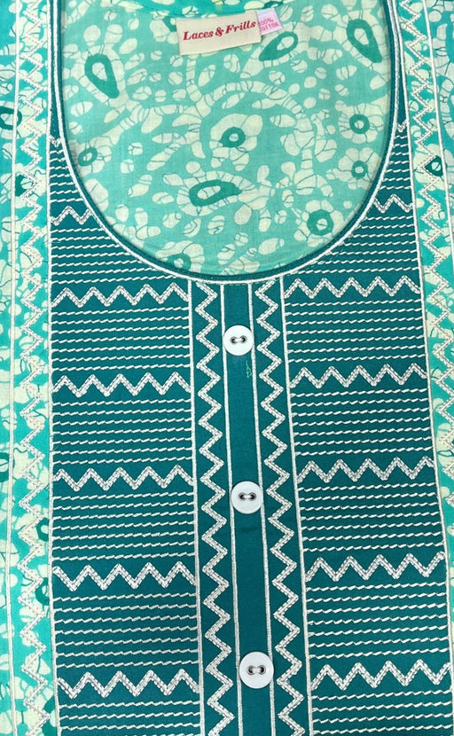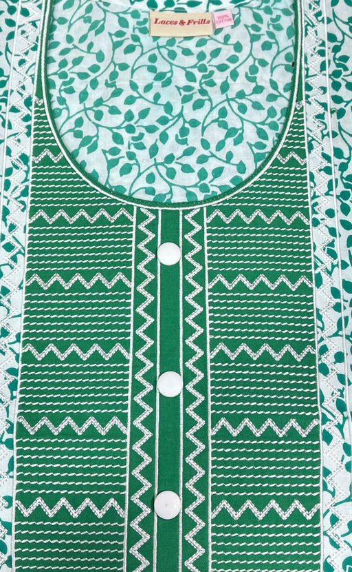 White/Green Garden Pure Cotton Nighty. Pure Durable Cotton | Laces and Frills