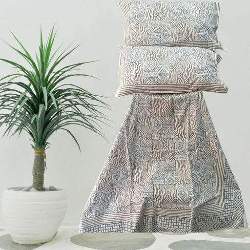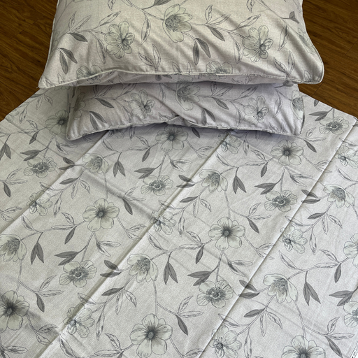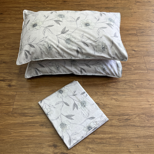 Grey Floral Double Bedsheet with Pillow Covers/90" x 108"