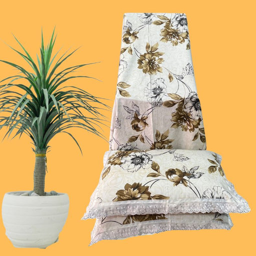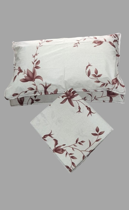 White/Brown Garden Double Bedsheet with Pillow Covers/108" x 108"