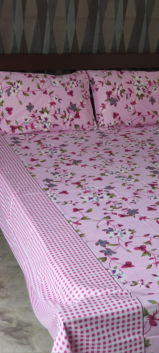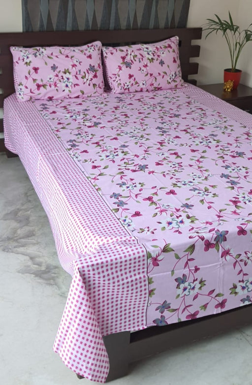 Pink Floral Double Bedsheet with Pillow Covers/90" x 108"