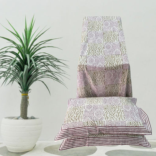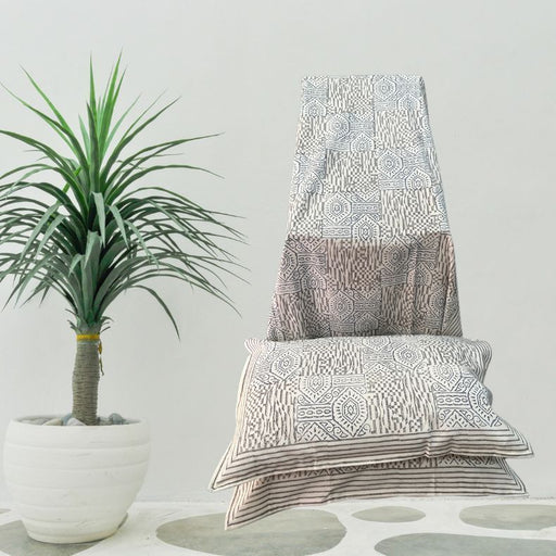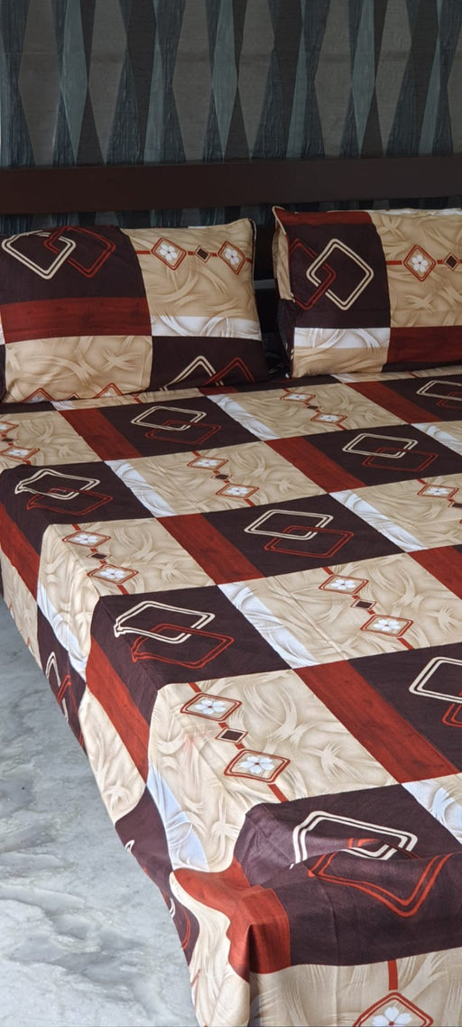 Brown Abstract Double Bedsheet with Pillow Covers/108" x 108"