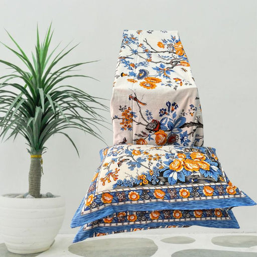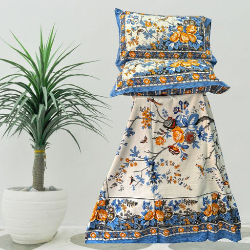 Light Blue Garden Double Bedsheet with Pillow Covers/90" x 108"