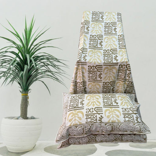 White/Cream Leafy Double Bedsheet with Pillow Covers/108" x 108"