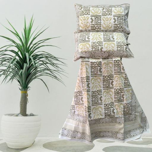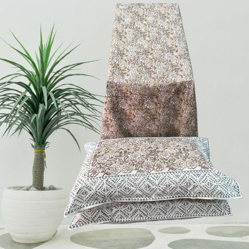 Beige Garden Double Bedsheet with Pillow Covers/90" x 108"