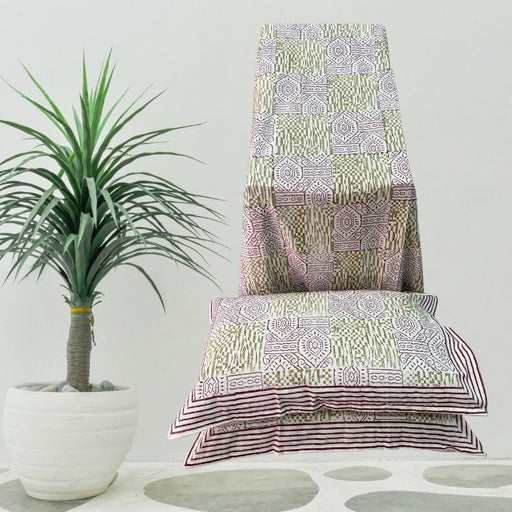 Sea Green Garden Double Bedsheet with Pillow Covers/90" x 108"
