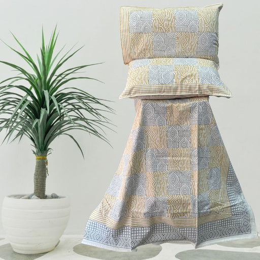 Mustard Abstract Double Bedsheet with Pillow Covers/90" x 108"