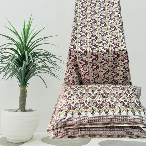Cream Garden Double Bedsheet with Pillow Covers/90" x 108"