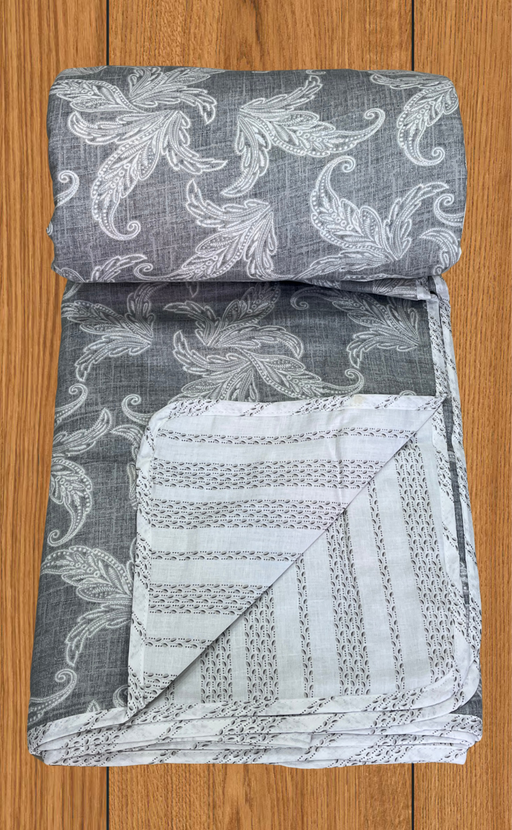 View full detailsBlanket | Dohar. Grey Leafy, Soft & Cozy. One Double bed Reversible | Laces and Frills