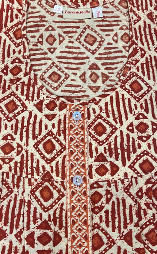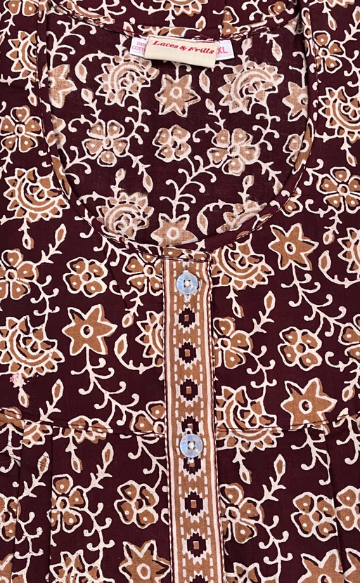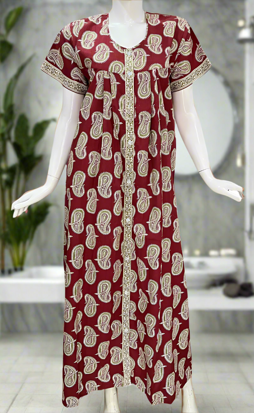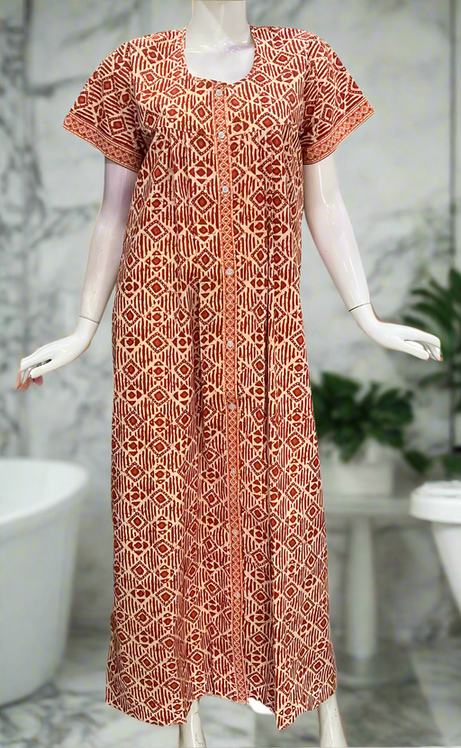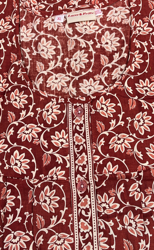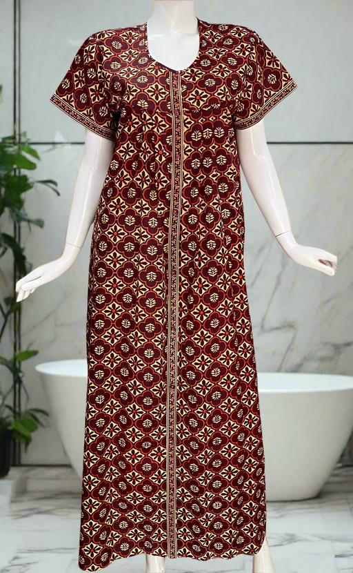 View full detailsRust Maroon Abstract Full Open Pure Cotton Nighty. Pure Durable Cotton | Laces and Frills