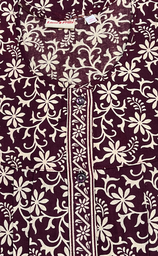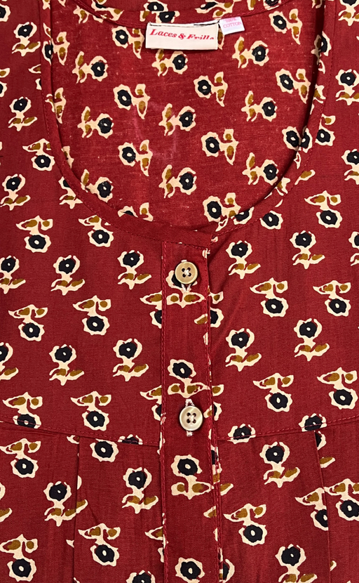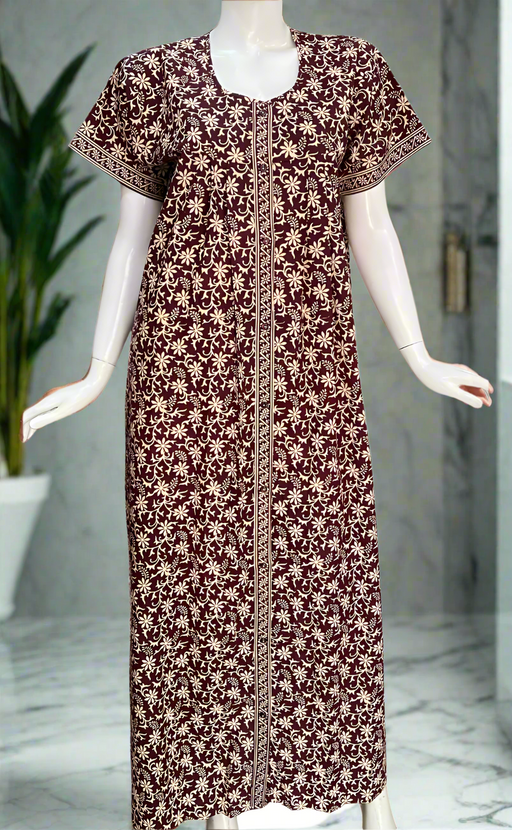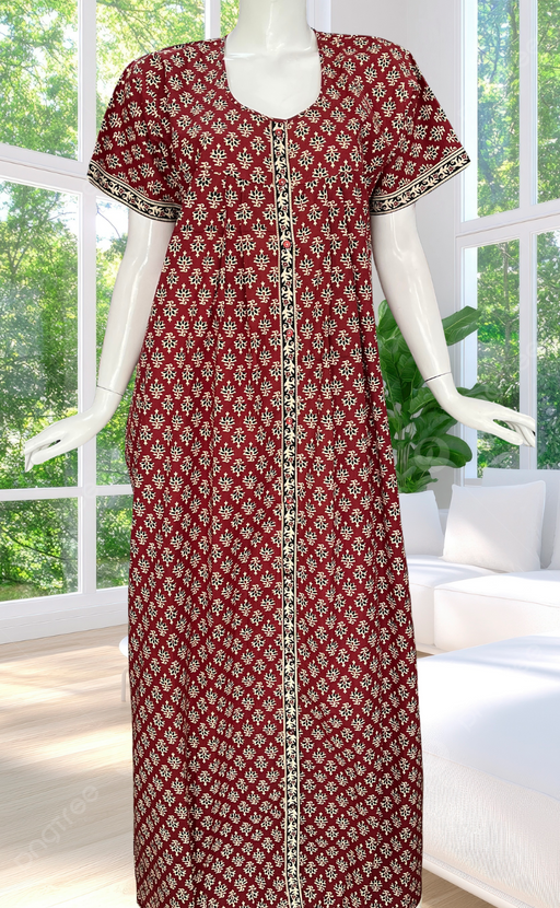 View full detailsMaroon Floral Garden Full Open Pure Cotton Nighty. Pure Durable Cotton | Laces and Frills