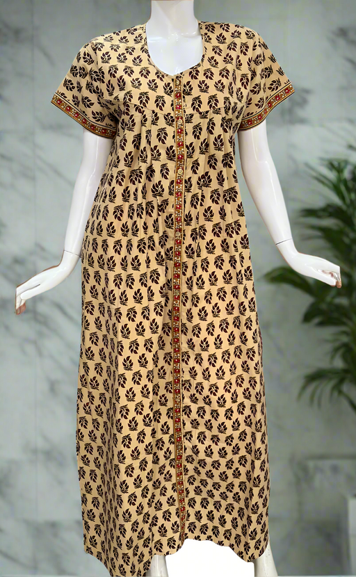 View full detailsCream/Maroon Leafy Full Open Pure Cotton Nighty. Pure Cotton | Laces and Frills