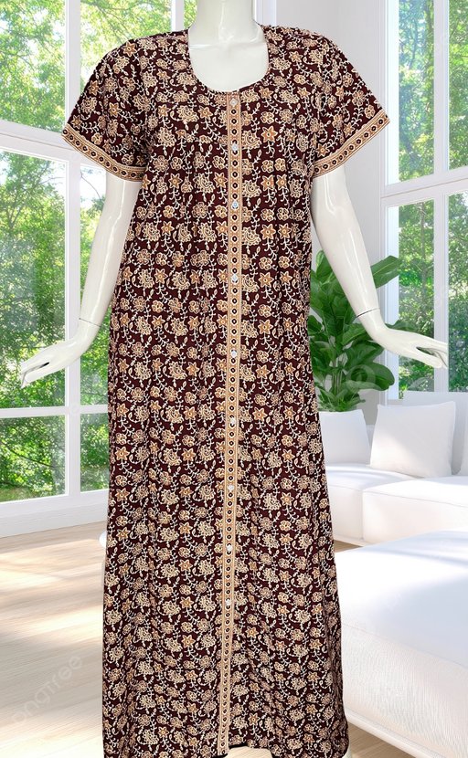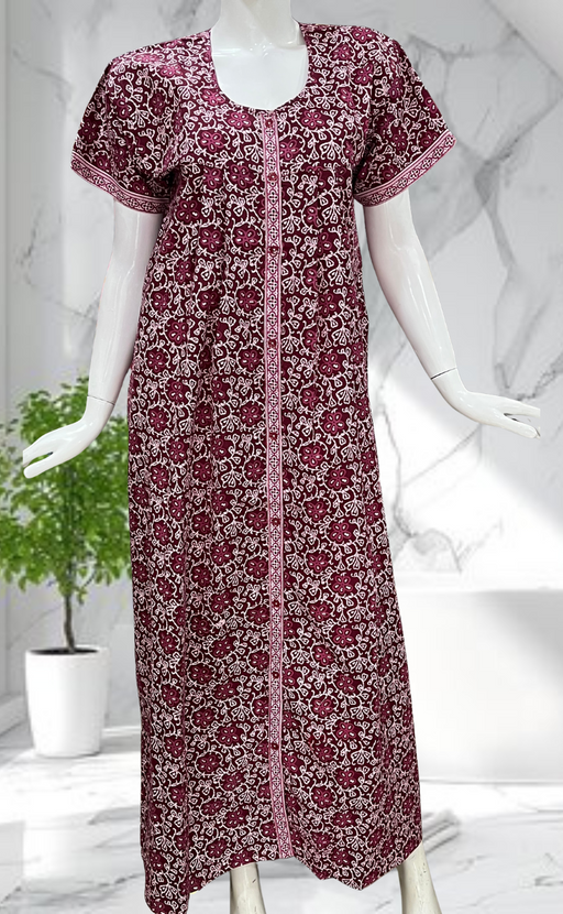 View full detailsMaroon Floral Full Open Pure Cotton Nighty. Pure Cotton | Laces and Frills