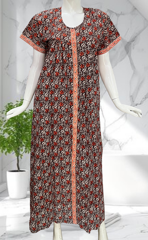 View full detailsMaroon/Orange Garden Full Open Pure Cotton Nighty. Pure Cotton | Laces and Frills