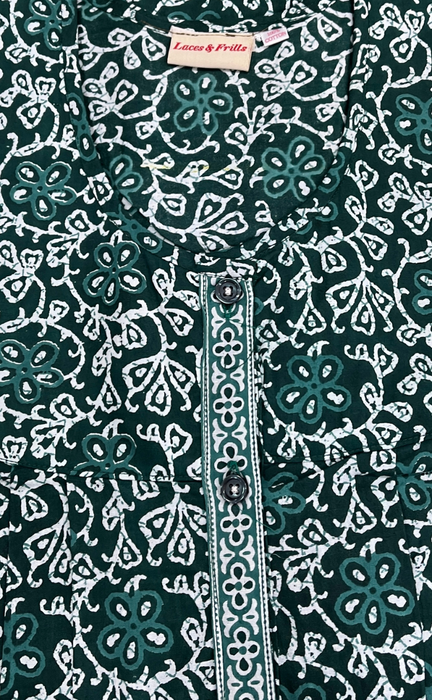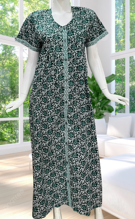 Dark Green Floral Full Open Pure Cotton Nighty. Pure Cotton | Laces and Frills