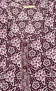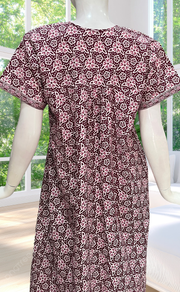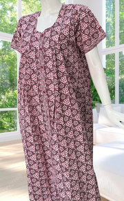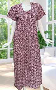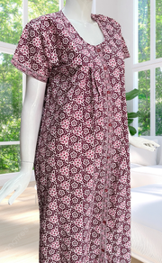 Maroon Floral Full Open Pure Cotton Nighty. Pure Cotton | Laces and Frills