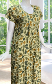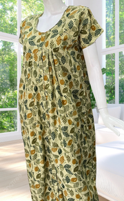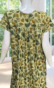Pista Green Leafy Full Open Soft Cotton Nighty. Soft Breathable Fabric | Laces and Frills