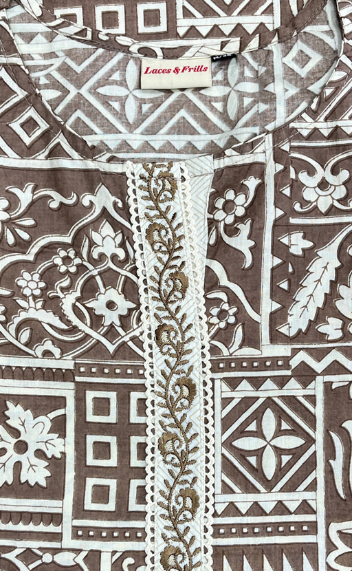 Brown Ethnic Print Jaipuri Cotton Kurti. Pure Versatile Cotton. | Laces and Frills