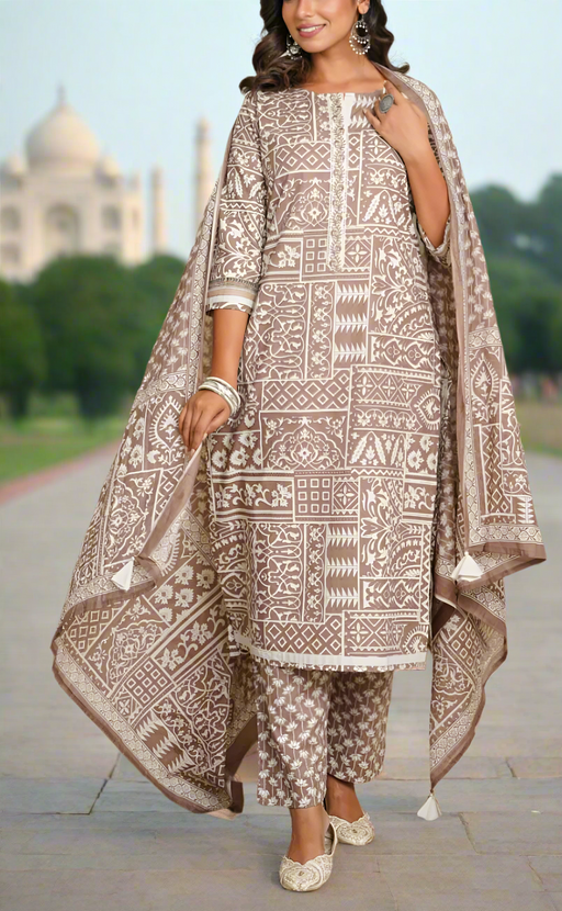 View full detailsBrown/Cream Garden Jaipur Cotton Kurti With Pathani Pant And Cotton Dupatta Set .Pure Versatile Cotton. | Laces and Frills