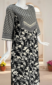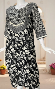 Black Floral Jaipuri Cotton Kurti. Pure Versatile Cotton. | Laces and Frills