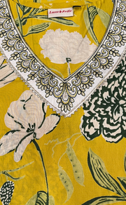 Yellow Floral Jaipuri Cotton Kurti. Pure Versatile Cotton. | Laces and Frills