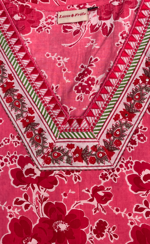 View full detailsRani Pink Floral Jaipuri Cotton Kurti. Pure Versatile Cotton. | Laces and Frills