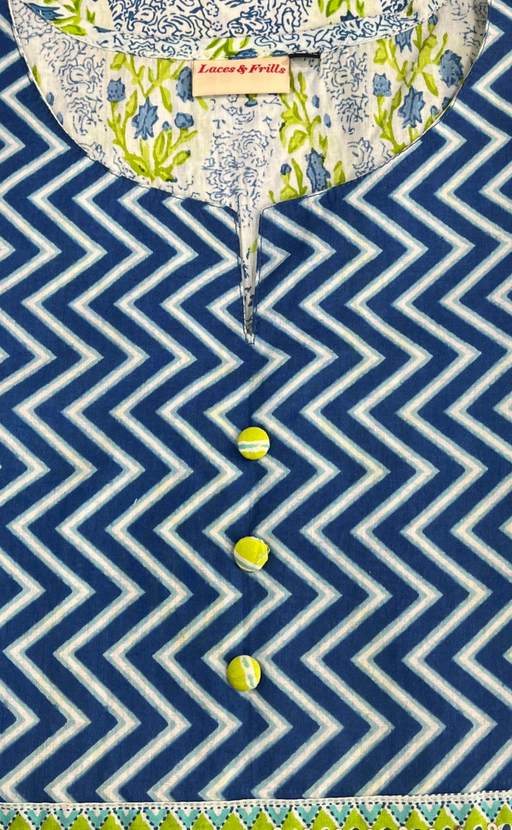 View full detailsBlue Motif Jaipuri Cotton Kurti. Pure Versatile Cotton. | Laces and Frills