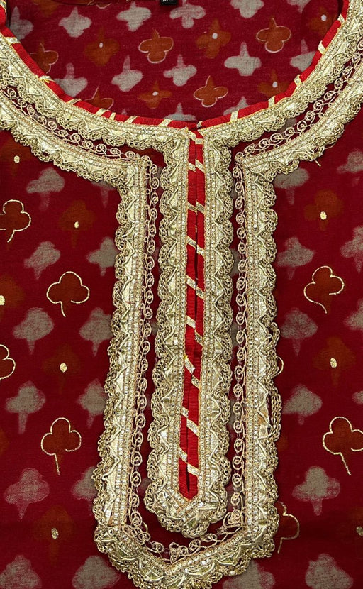 View full detailsMaroon Motif Jaipur Cotton Kurti With Pant And Dupatta Set. Pure Versatile Cotton. | Laces and Frills
