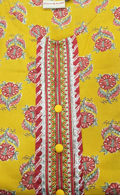 View full detailsYellow Garden Kurti With Pant Set.Pure Versatile Cotton. | Laces and Frills