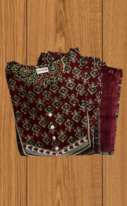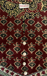 Dark Maroon Ajrakh Jaipur Cotton Kurti With Pant And Dupatta Set. Pure Versatile Cotton. | Laces and Frills