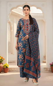 Indigo Blue Garden Jaipur Cotton Kurti With Pant And Dupatta Set. Pure Versatile Cotton. | Laces and Frills