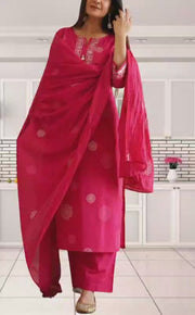 Rani Pink Floral Jaipur Cotton Kurti With Pant And Dupatta Set. Pure Versatile Cotton. | Laces and Frills