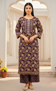 Violet Floral Jaipur Cotton Kurti With Pant And Dupatta Set. Pure Versatile Cotton. | Laces and Frills