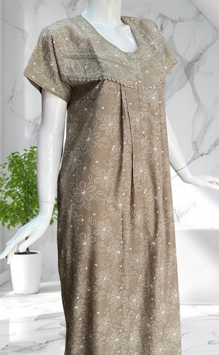 Beige Garden Soft Cotton Nighty. Soft Breathable Fabric | Laces and Frills