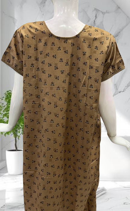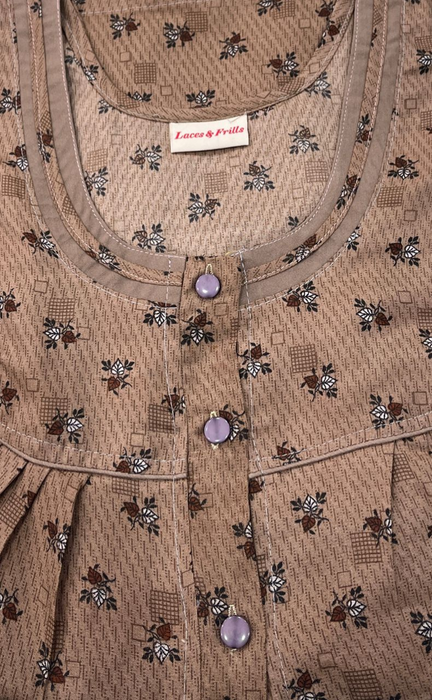 Brown Tiny Flora Soft Cotton Nighty. Soft Breathable Fabric | Laces and Frills