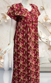 Maroon Garden Pure Cotton Feeding Nursing Nighty. Pure Durable Cotton | Laces and Frills