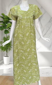 Pista Green Garden Pure Cotton Nighty. Pure Durable Cotton | Laces and Frills