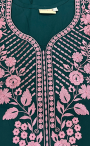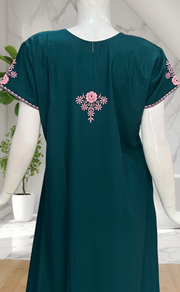 Teal Green Embroidery Soft Cotton Nighty. Soft Breathable Fabric | Laces and Frills