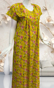 Yellow Garden Pure Cotton Feeding Nursing Nighty. Pure Durable Cotton | Laces and Frills