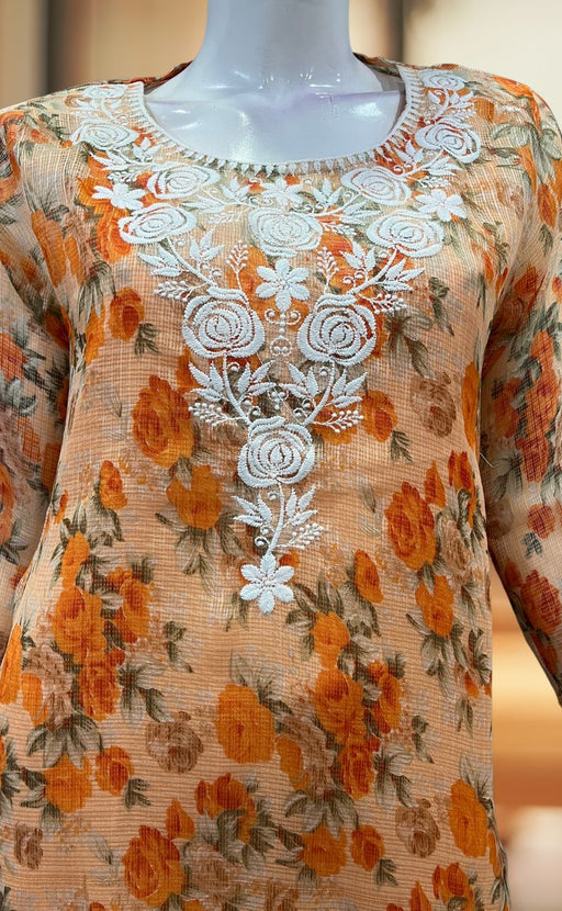 View full detailsOrange Chikankari Kurti. Kota Doria Fabric. | Laces and Frills