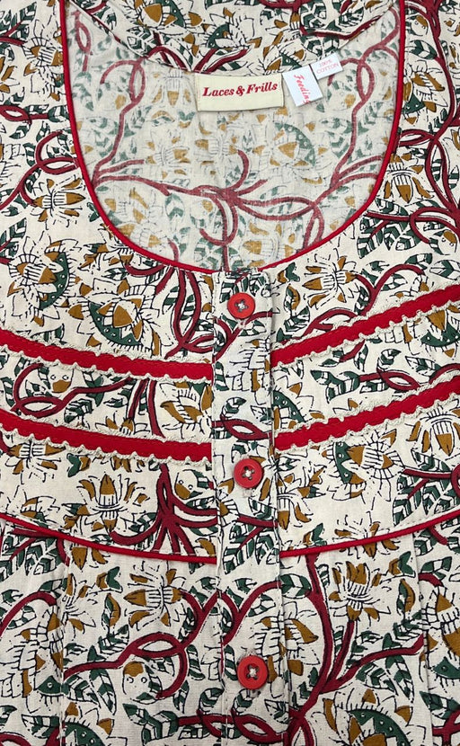 Red Floral Soft Cotton Feeding Nursing Nighty. Soft Breathable Fabric | Laces and Frills