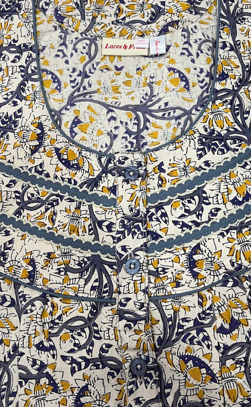 Off White/Blue Garden Pure Cotton Feeding Nursing Nighty . Pure Durable Cotton | Laces and Frills